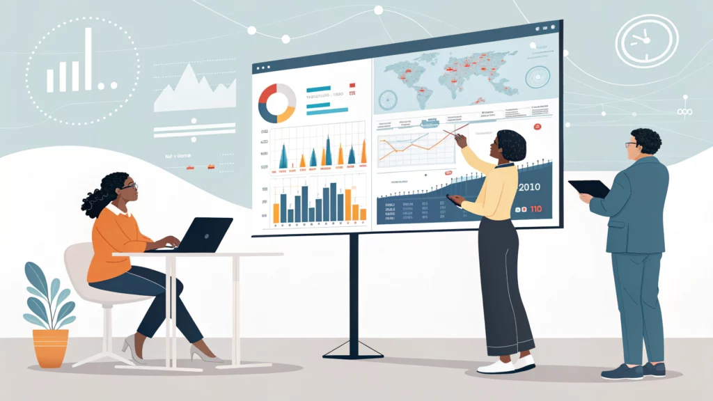 Les organisations produisent chaque jour une masse de chiffres : ventes, productivité, satisfaction client, ressources humaines. Ces données restent souvent complexes à interpréter. C’est pourquoi elles sont d’abord traduites en graphiques par des logiciels spécialisés comme Excel, Power BI ou Google Data Studio. Ces outils rendent l’information accessible en un coup d’œil. Un camembert révèle la répartition d’un budget, un histogramme compare la performance de plusieurs services, une courbe illustre l’évolution des ventes. Ce premier travail de simplification est essentiel : il permet de passer d’une donnée abstraite à une visualisation concrète, compréhensible par tous.